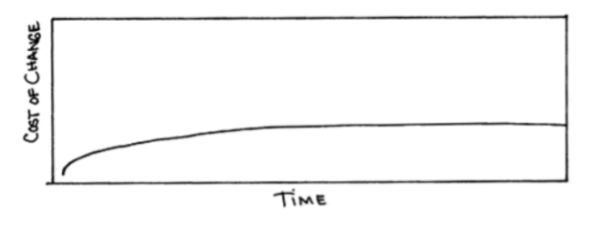 Este concepto fue, para mí, revelador. Quizás Beck pueda haber exagerado un poco (como sugiere Ambler en este post), pero lo crucial es destacar la importancia de mantener el costo de cambio tan bajo como sea posible para poder incorporar funcionalidad sustentablemente, adaptándonos al cambio. Mantener el costo de cambio bajo es, en definitiva, un requisito fundamental si queremos ser Ágiles. Si no pudiéramos hacerlo, el resto de las prácticas perderían sentido. Dicho de otro modo, si incorporar funcionalidad se volviese cada vez más costoso, difícilmente podríamos mantener la agilidad.